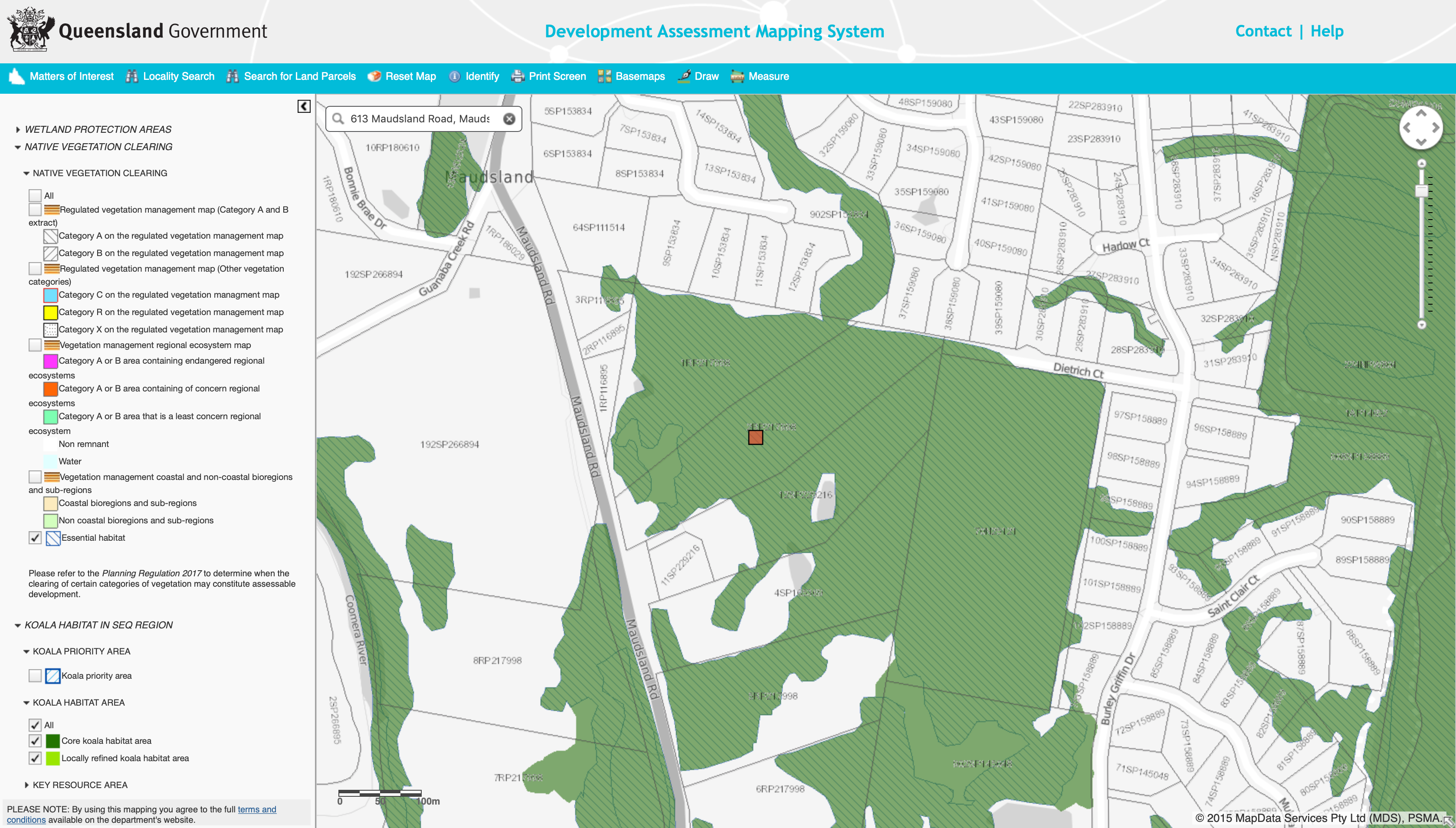 • Clearing in a koala habitat area necessary to maintain existing infrastructure;