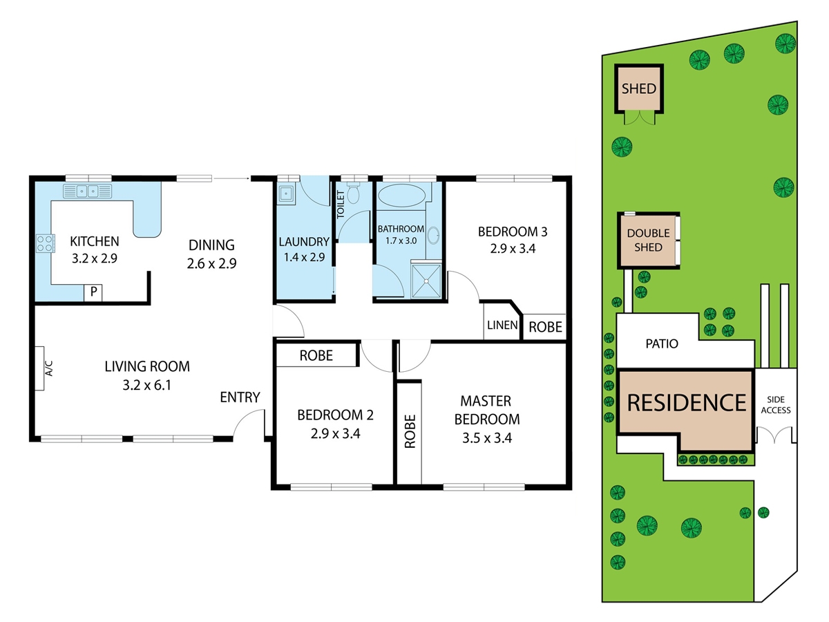 • 3 bedrooms with built-in robes & ceiling fans