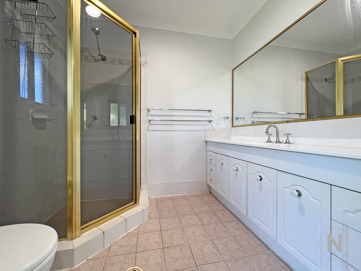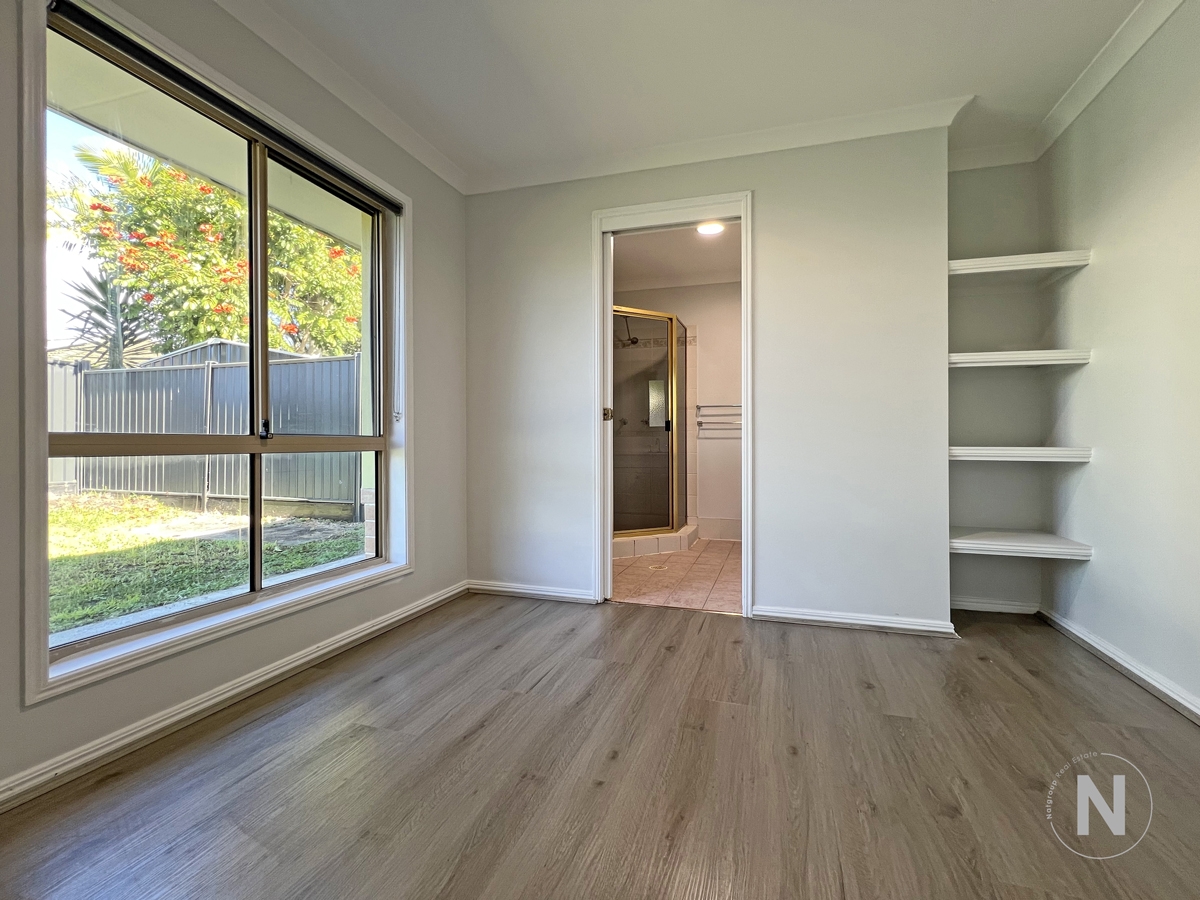 • Master bedroom with ensuite, ceiling fan, mirrored built-in robes + separate retreat area that could be used as a walk-in closet space or study area