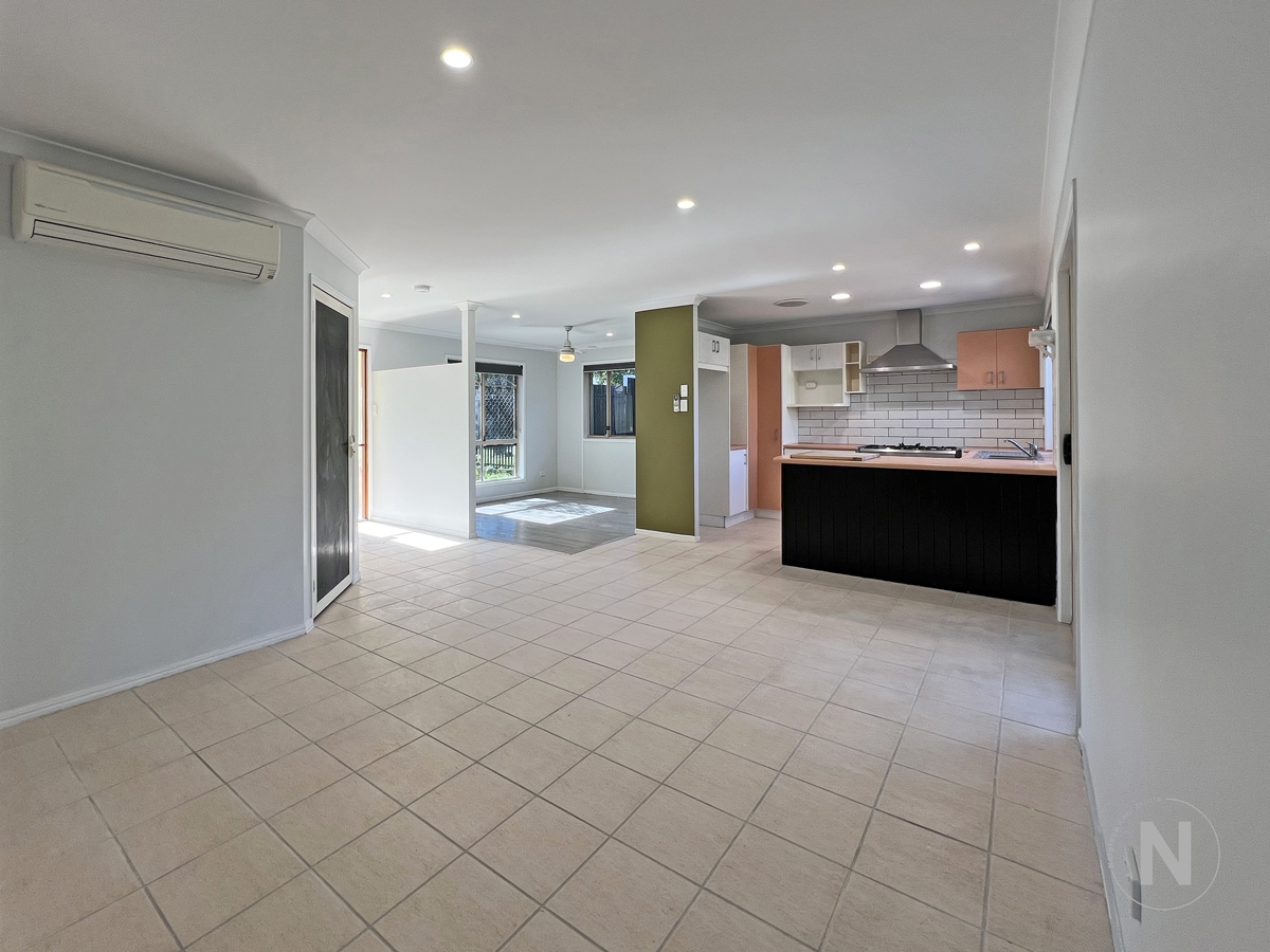 • Open plan dining/living area next to kitchen with split system aircon