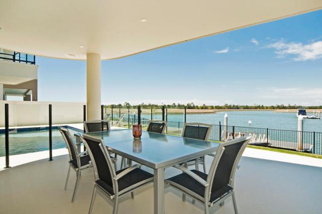 Here is another breathtaking home situated in the prestigious waterfront community of Calypso Bay. This luxury home has had every extra finishing touch a high end home deserves with meticulous planning and attention even during the construction process. The open plan kitchen area adjoins a meals, lounge & dining area with an amazing granite bench top, butlers pantry and all the best appliances available.