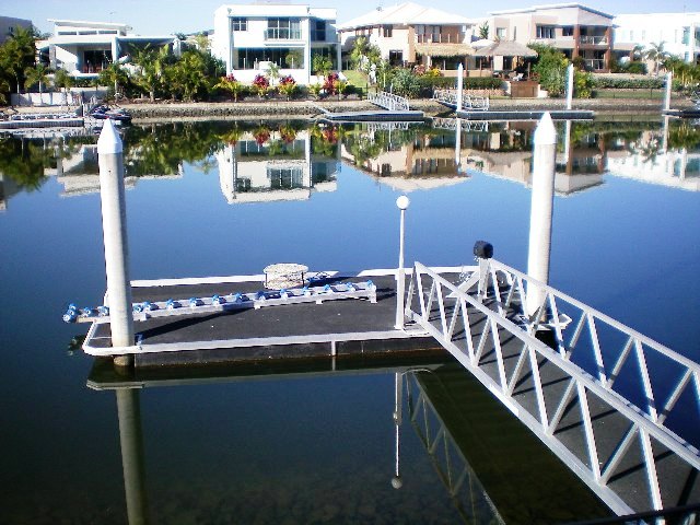 The pontoon is complete with power and a boat roller system for a 6 metre plus boat and twin concrete pylons for a large vessel to take off into Coomera River and the Broadwater waterways.