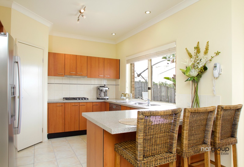 • Modern, stylish designer kitchen, well-equipped with dishwasher, plumbed fridge space, brand new Westinghouse stainless steel double oven and 4 burner gas stove, extra thick stone bench top & breakfast bar
