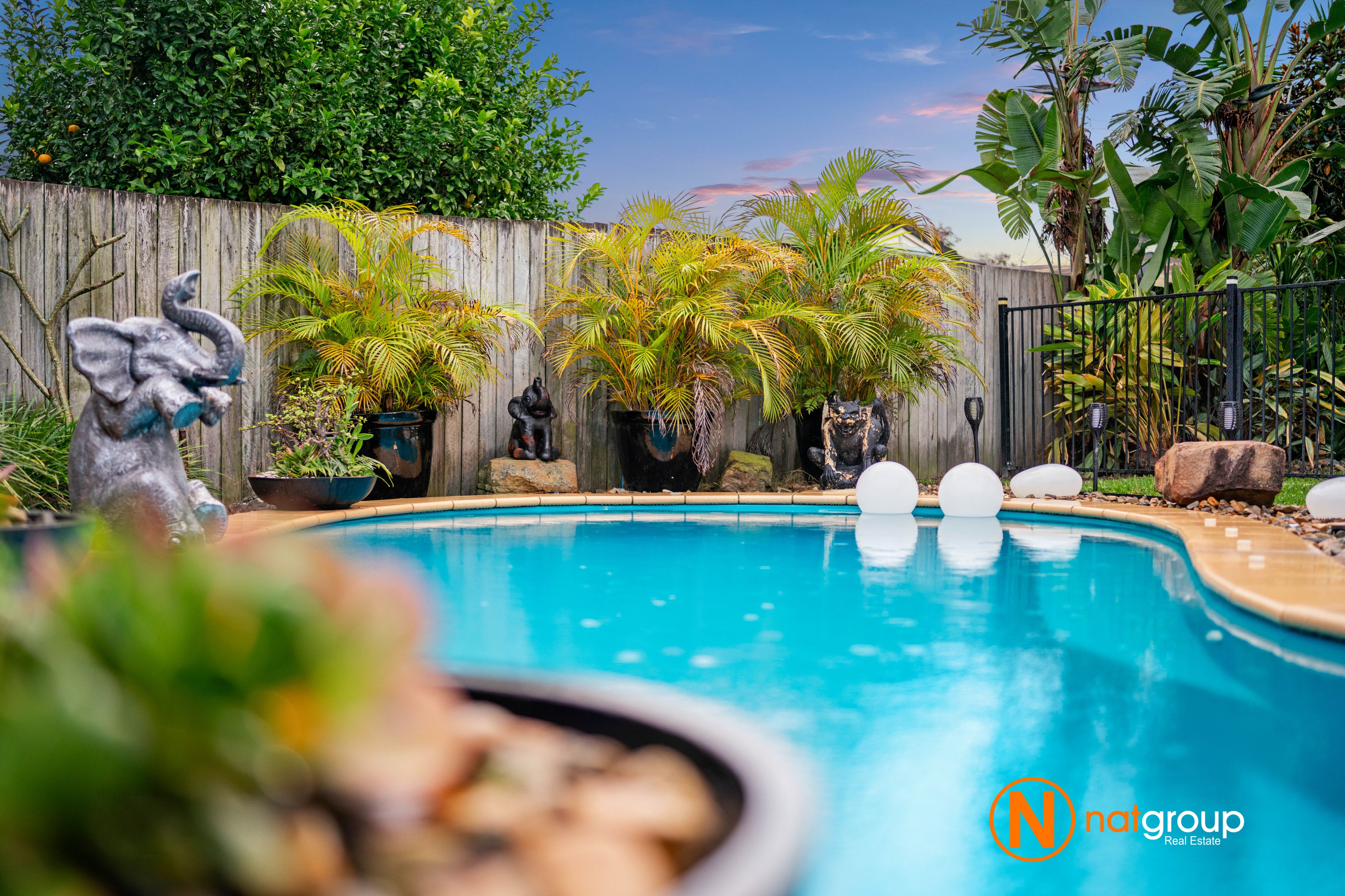 • Sparkling pool with tiered seating off the back of the home