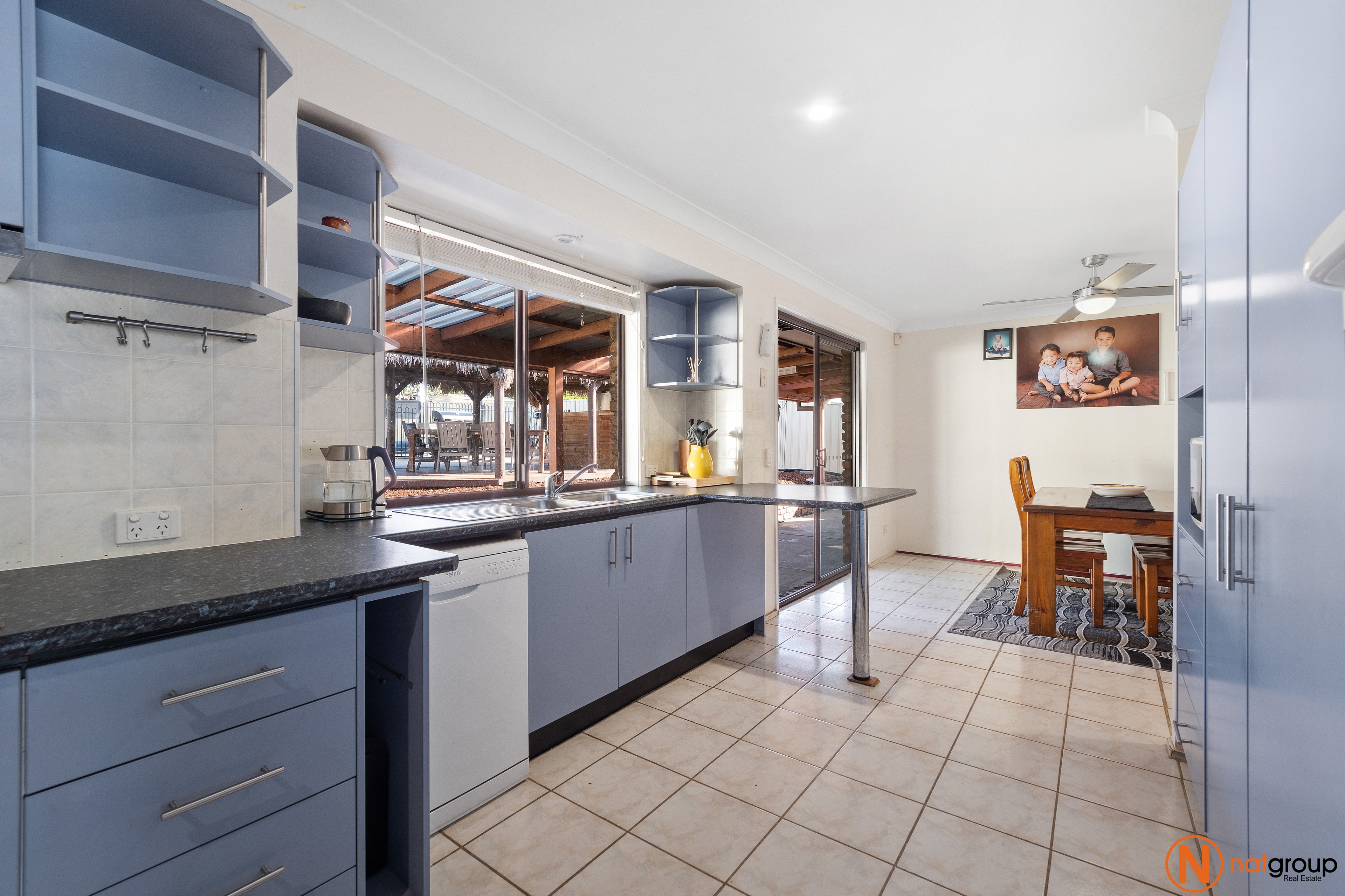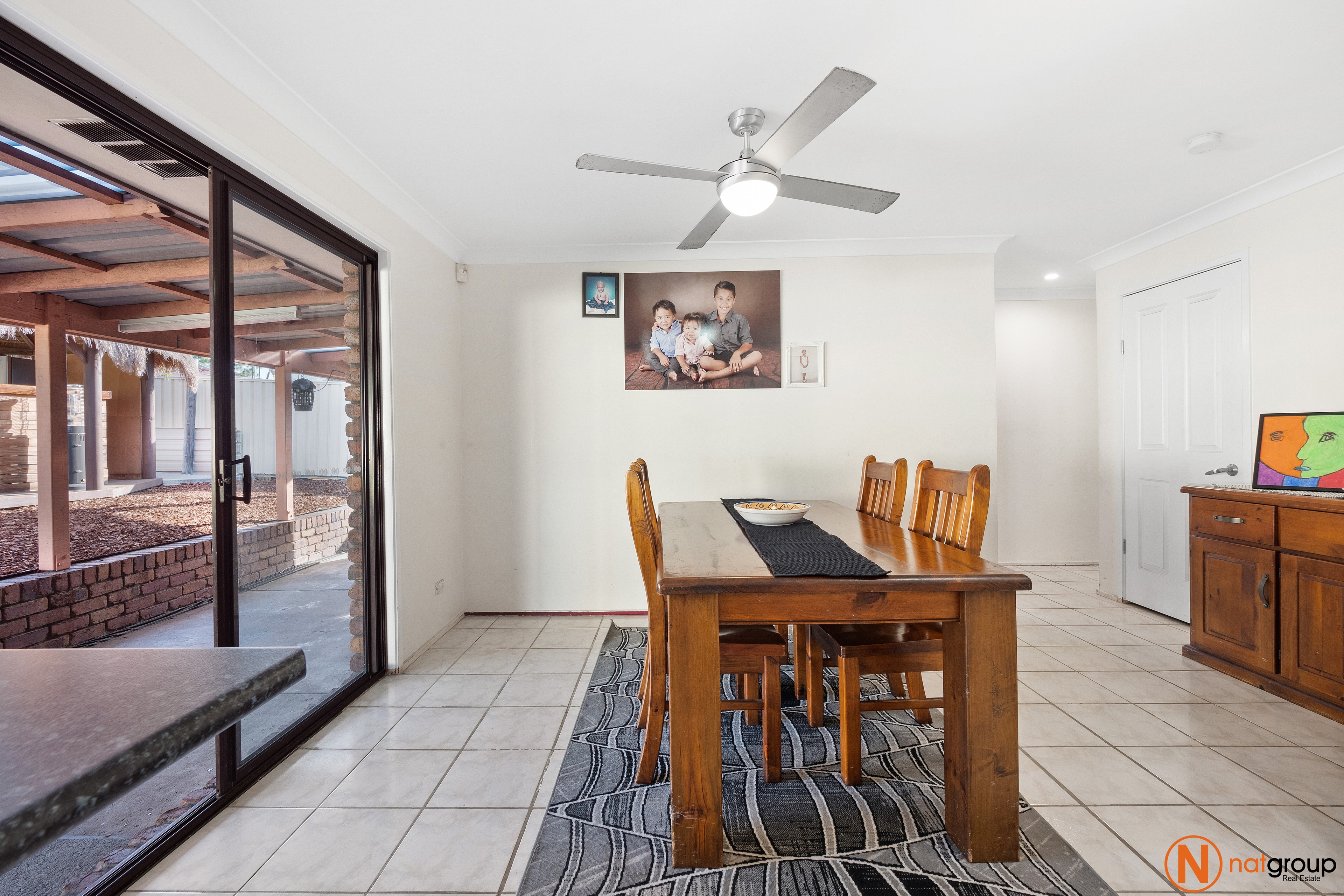 • Dining area opposite kitchen with ceiling fan