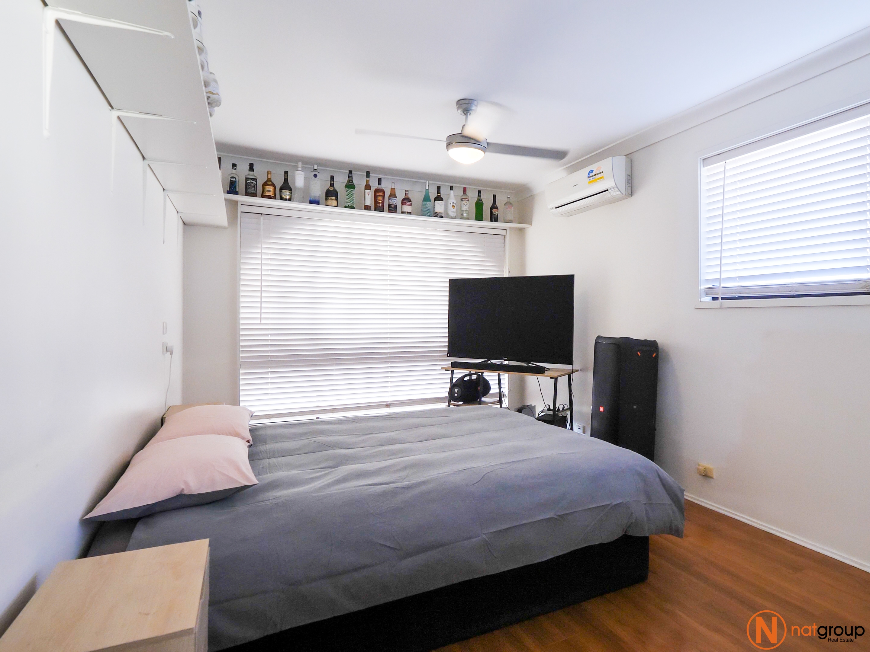 • Master bedroom with ceiling fan, air conditioner and walk-through wardrobe to ensuite