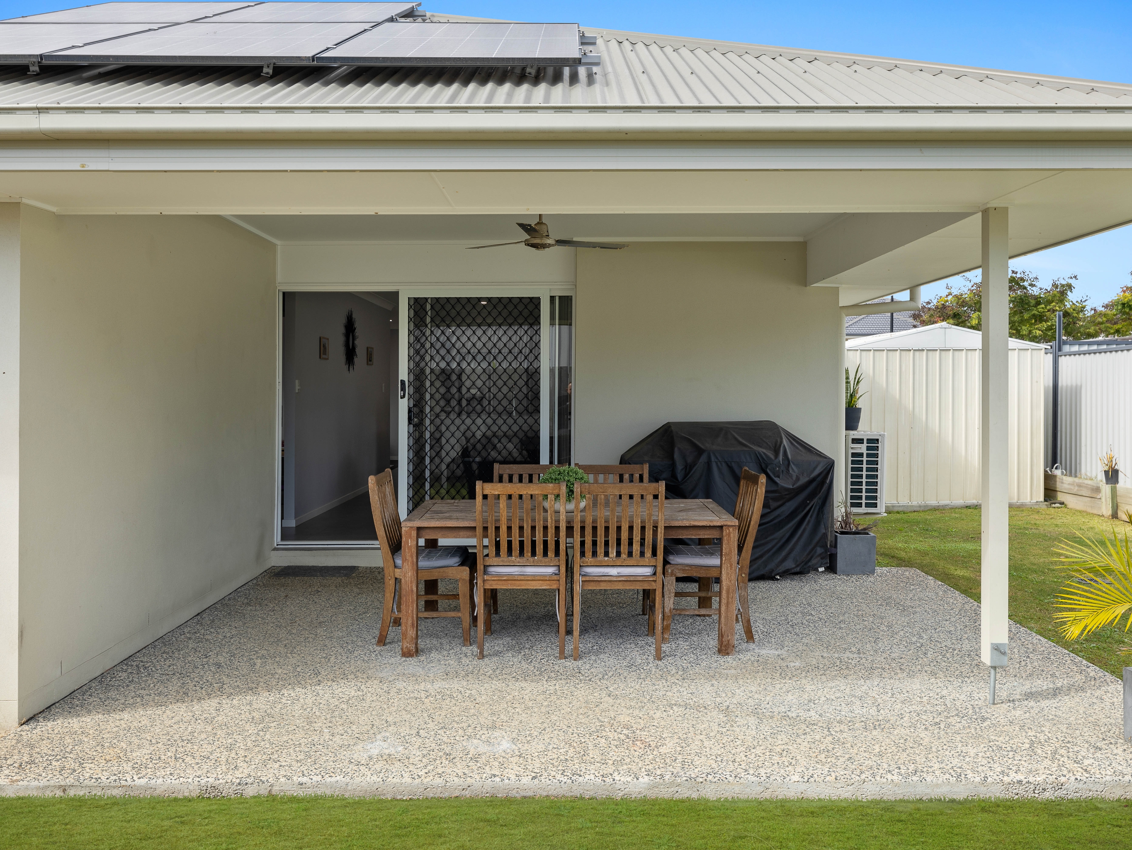 • Outdoor Entertaining Area: Covered space with a well-maintained garden and grass area for kids and pets
