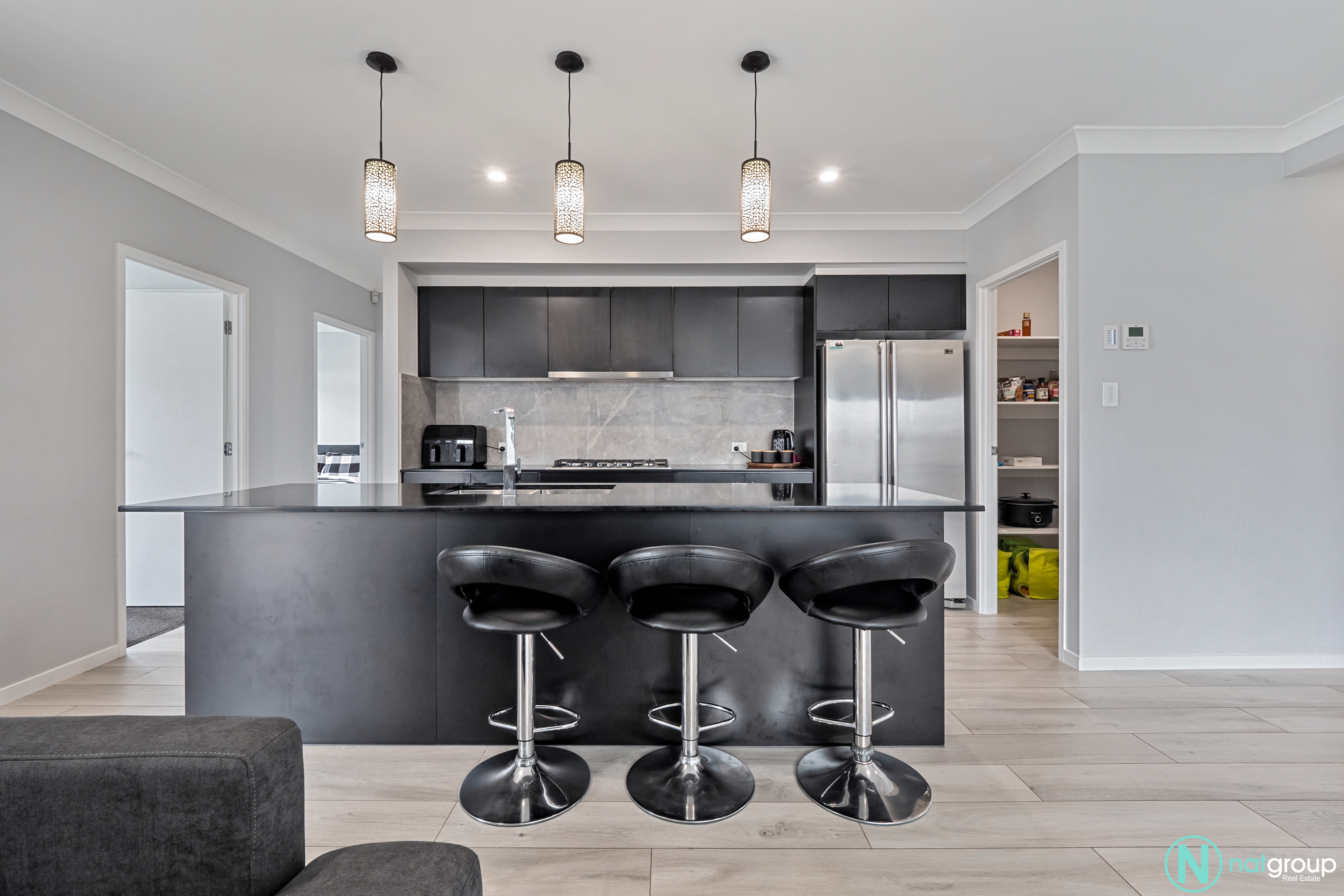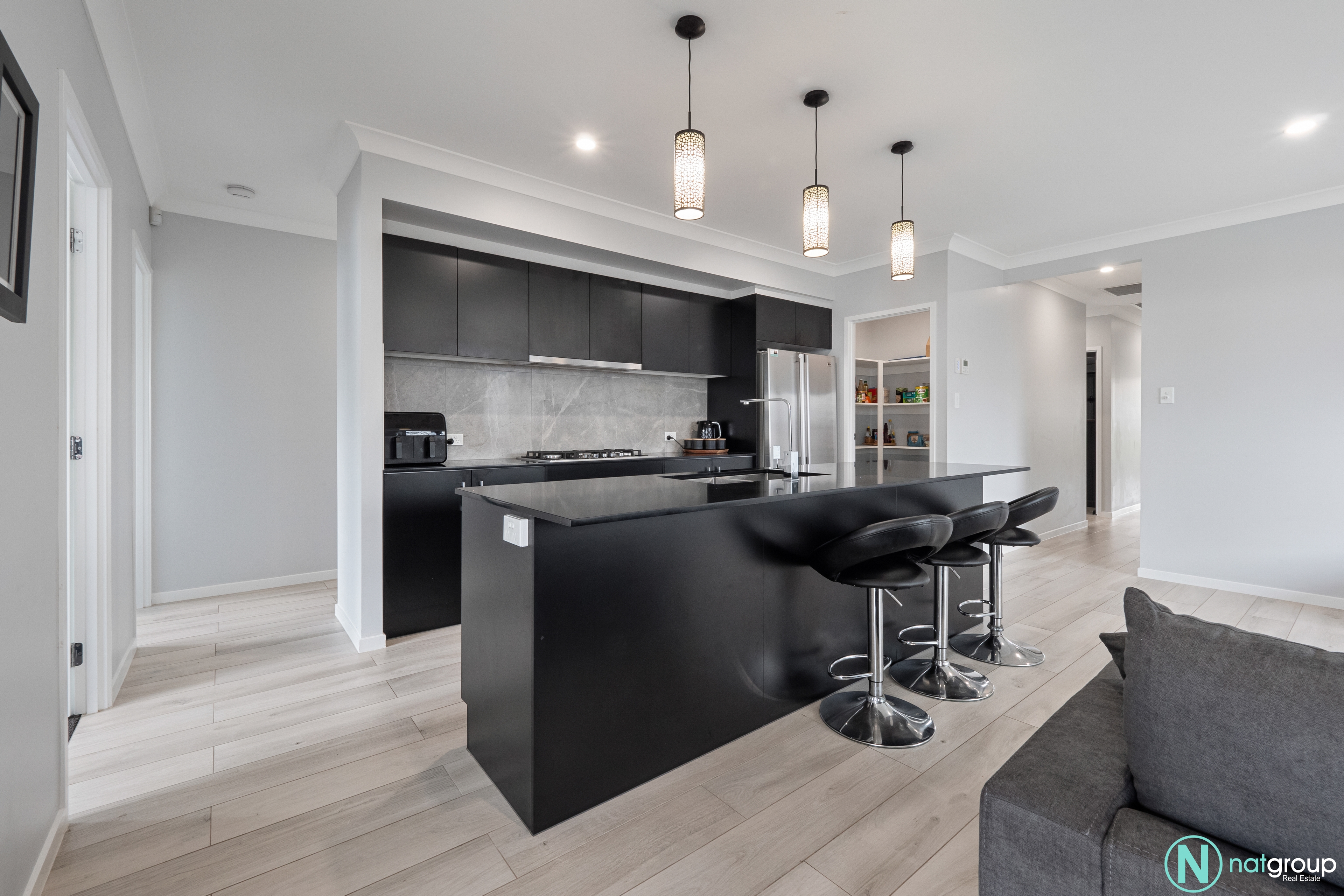 At the heart of the home is a chef’s dream kitchen, boasting a spacious layout with a gas cooktop, oven, dishwasher, and a generous walk-in pantry. The kitchen overlooks the open-plan living and dining area, making it ideal for both casual family meals and entertaining guests. Whether you're a seasoned chef or love to host, this kitchen is designed for convenience and style.